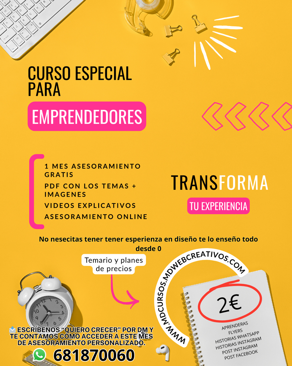 Recibe asesoramiento directo y estrategias adaptadas a tus necesidades durante un mes completo.